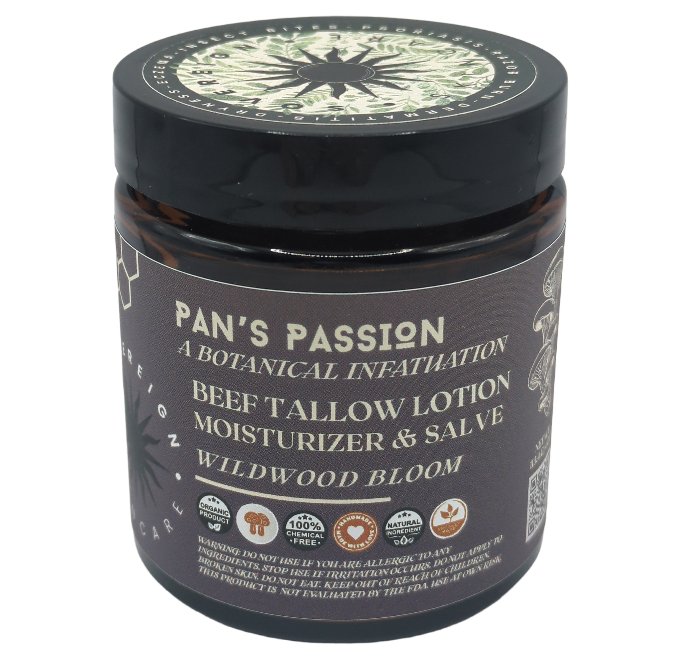 Ignite your vital spirit withย Pan’s Passion, an intoxicating tallow salve that awakens the senses. This antioxidant blend of nine mushrooms leads you through the deep dark woods to an ancient sorcerer’s garden where stressors melt away, revealing a supple and resilient complexion. Let it be your daily celebration of vitality and untamed beauty.
